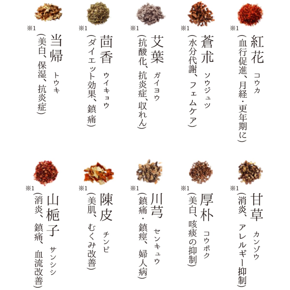 素材:チンピ・ウイキョウ・サンシシ・ガイヨウ・コウボクセンキュウ・カンゾウ・コウカ・ソウジュツ・トウキ